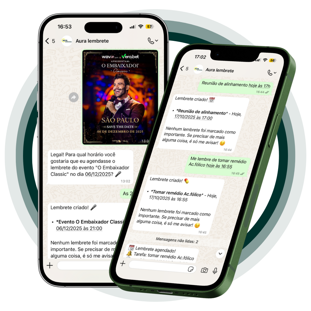 Criação de lembretes automáticos de suas tarefas dentro de seu próprio WhatsApp pela conversa com a Aura (19) 99279-9661. Case sendo expandido para solução B2C(Plano Gratuito e pago) e B2B (Empresas)Personalização para empresas e autônomos utilizarem em seus atendimentos